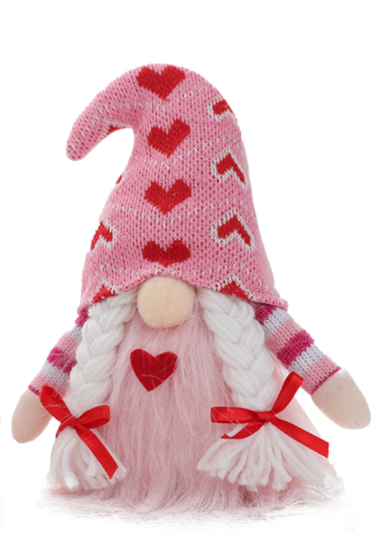 -Pink Heart Hat with White BraidsValentine Gnome